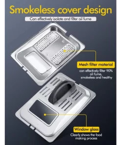 - SAFE WINDOW FOR MONITORING & OIL FILTER DESIGN – The thoughtfully designed lid features a window that not only prevents hot oil splashes but also allows you to keep a watchful eye on the frying process. Enjoy the comfort and convenience of monitoring your food without any hassle. The anti-slip pads at the bottom ensure stability during cooking, and the handles on both sides provide easy maneuverability.